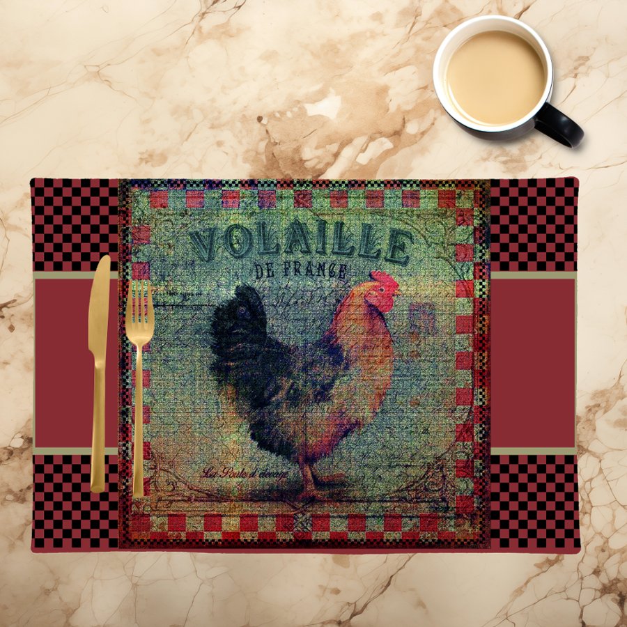 Vintage French Country Farmhouse Rooster Ad Cloth Placemat
