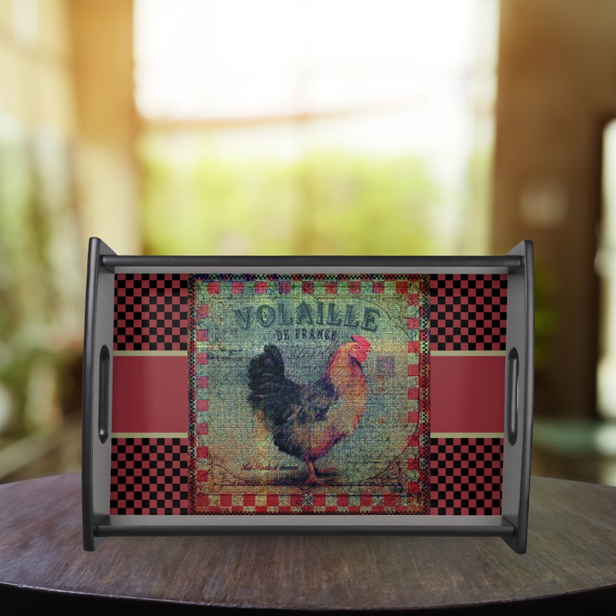 Vintage French Country Farmhouse Rooster Ad Serving Tray